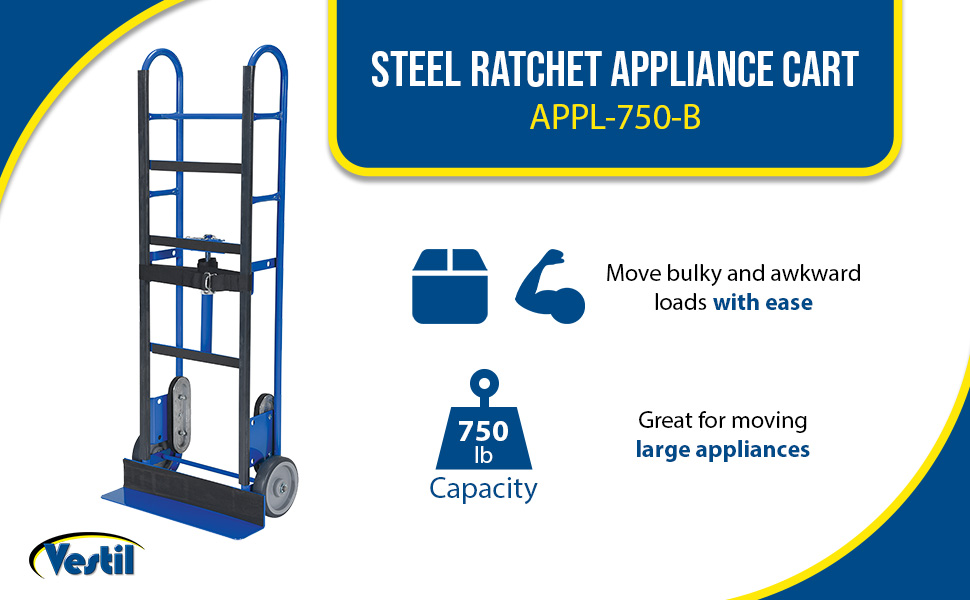 APPL-750-B APPL-750-BSteel Ratchet Appliance Cart 15 In. x 24 In. x 59 In. 750 Lb. Capacity BlueUniform Capacity (lb.): 750
