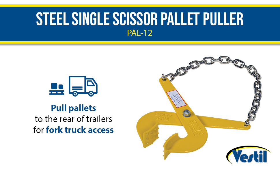 PAL-12 PAL-12Steel Single Scissor Pallet Puller 7 In. Jaw Opening 5000 Lb. Pulling Capacity YellowUniform Pulling Capacity (lb.): 5000