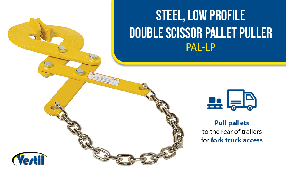 PAL-LP PAL-LPSteel Low Profile Double Scissor Pallet Puller 2 In. x 16-3/4 In. x 13-3/4 In. 5000 Lb. Capacity YellowUniform Pulling Capacity (lb.): 5000