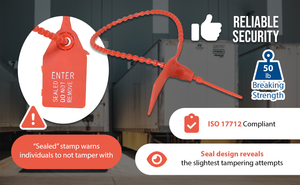 Seal trailers, gates, hatches and doors with these general purpose security seals. Reveals the slightest tampering attempts. Two colors and four styles to choose from. Polypropylene construction. Breaking strength is 50 lbs. Sold only in packages of 100. ISO 17712 Compliant.