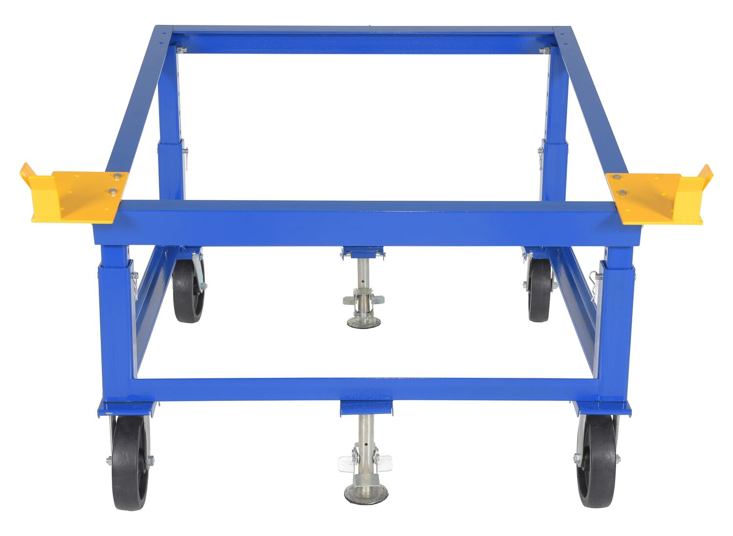 Reduce fork truck dependency by transporting pallets and crates to workstations with our Economical Pallet & Container Transporters. Units feature 8" glass-filled nylon casters for easier mobility. Choose from three different styles. Adjustable height models can only be adjusted when unloaded. Order optional corner guides for extra stability (2) come standard with model C-ATH-4048. Comes standard with two (2) rigid casters, two (2) swivel casters and (2) floor locks. Steel construction. Powder coat finish for added toughness.