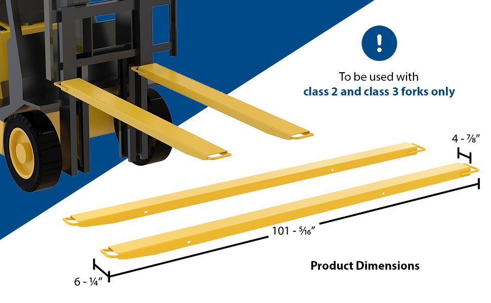 HOW TO USE / INSTALLATION Insert loop at the tip of the fork and slide it up at a 45 degree angle then lay it down over the existing fork. To be used with class 2 and class 3 forks only. Over 40% Lighter Than Standard Extensions!