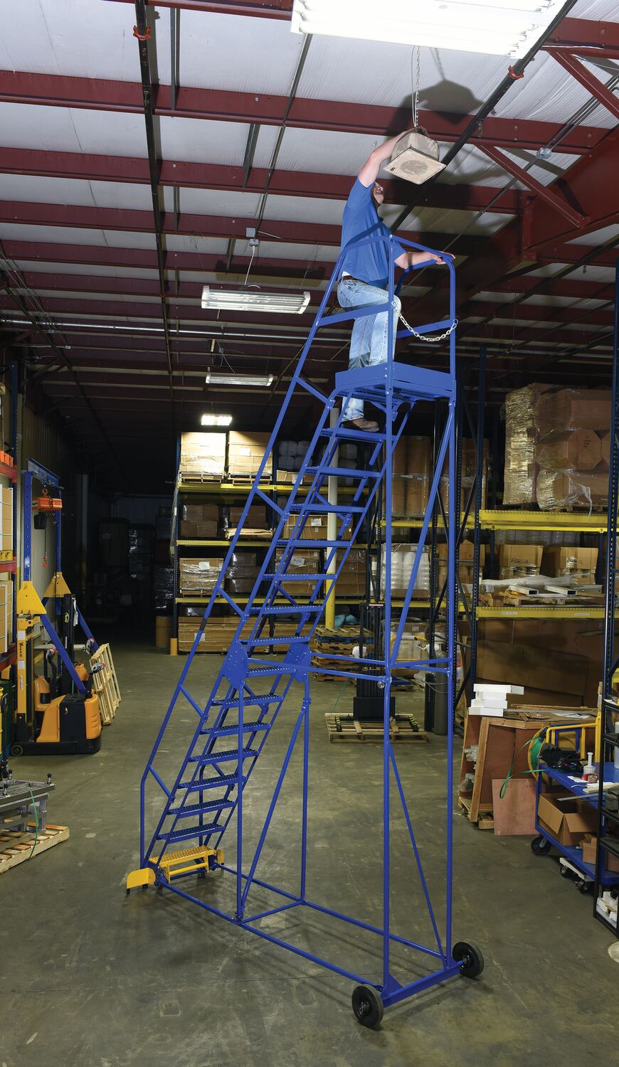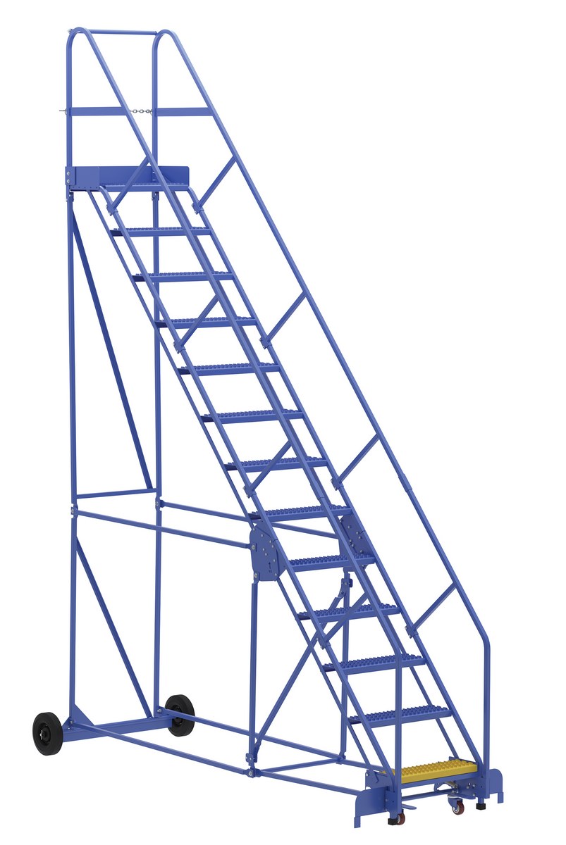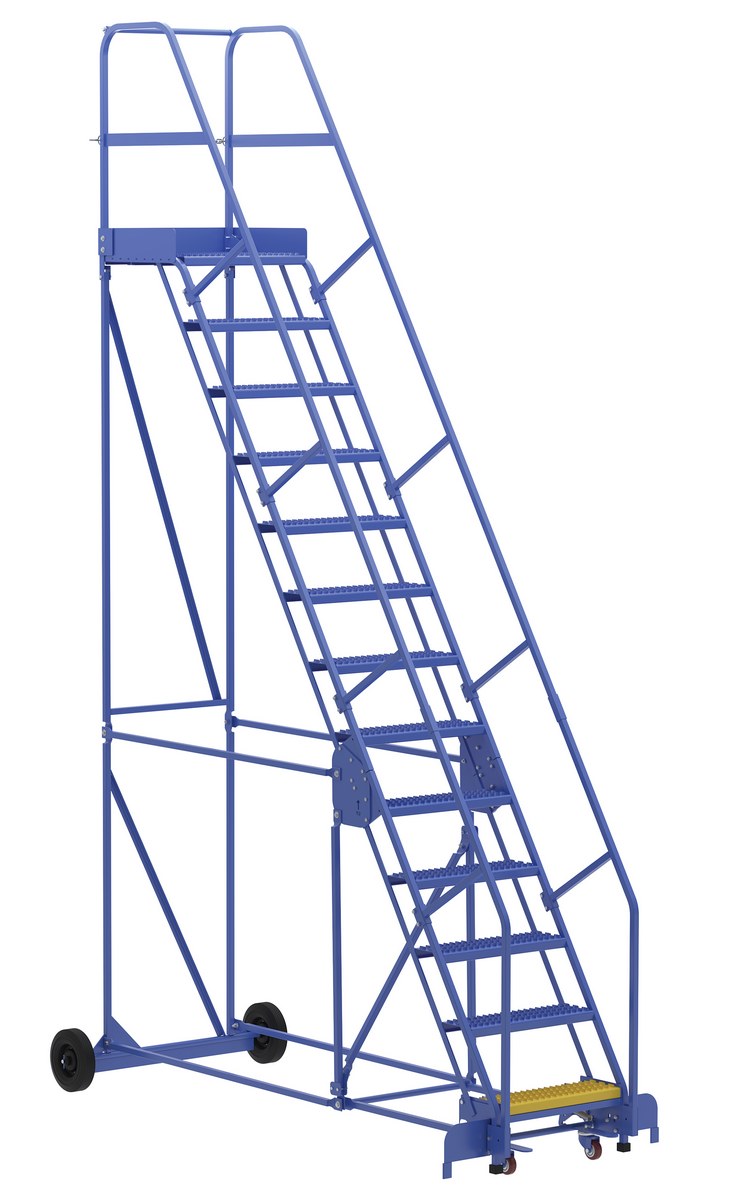 | Steel Rolling Warehouse Ladder 50 Degree 15 Perforated 23-9/16 In. Step Width 350 Lb. Capacity Blue | Uniform Capacity (lb.): 350 Number of Steps (qty.): 15 | 516 |