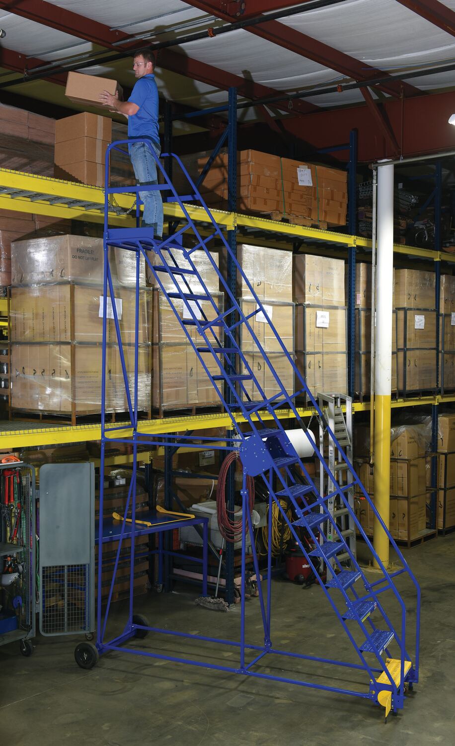 | Steel Rolling Warehouse Ladder 50 Degree 15 Grip Strut 23-9/16 In. Step Width 350 Lb. Capacity Blue | Uniform Capacity (lb.): 350 Number of Steps (qty.): 15 | 505 |