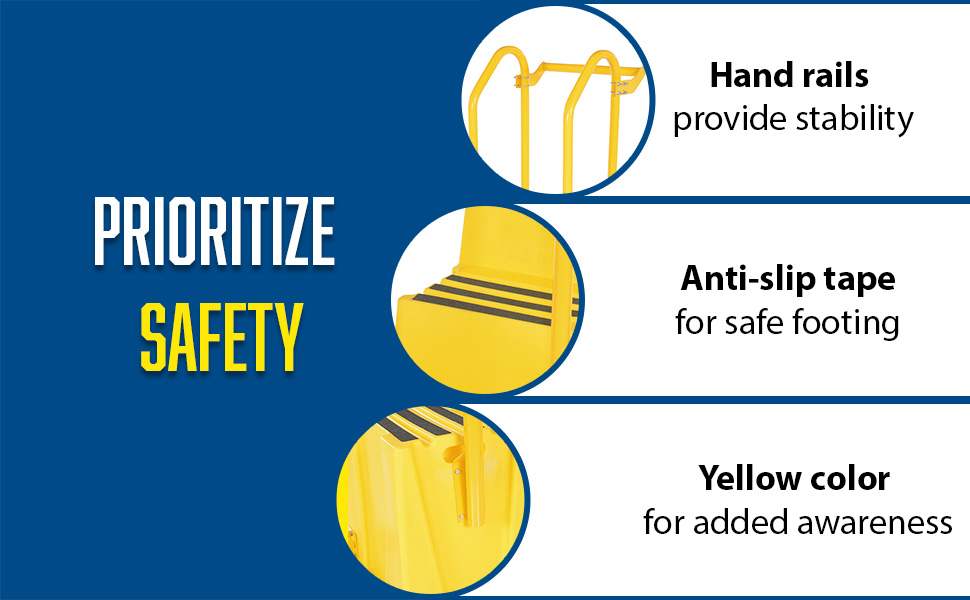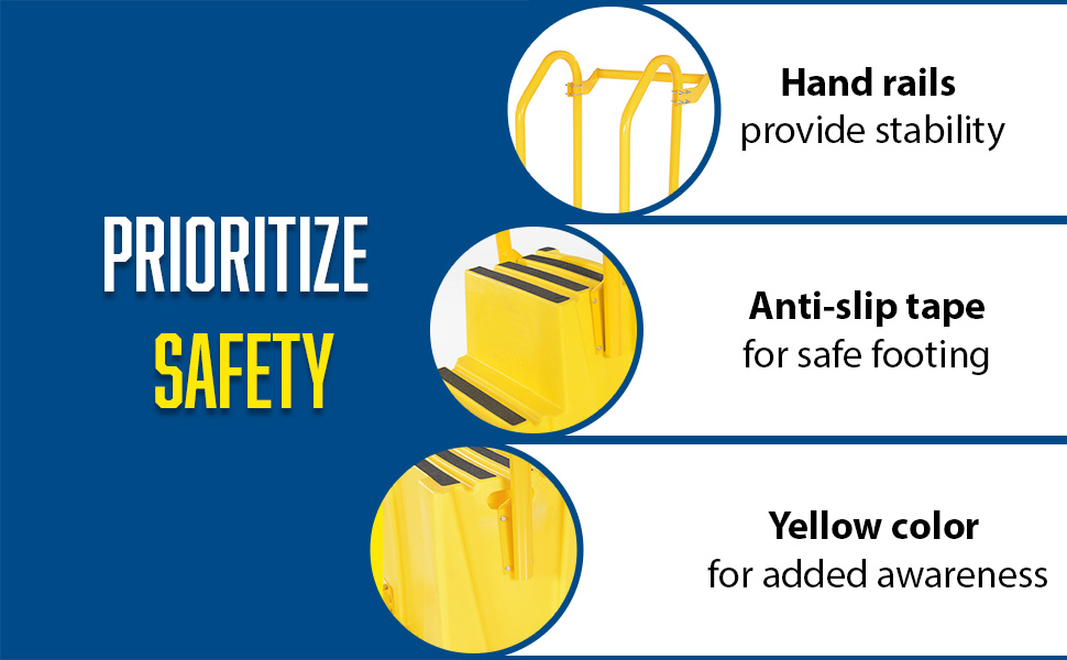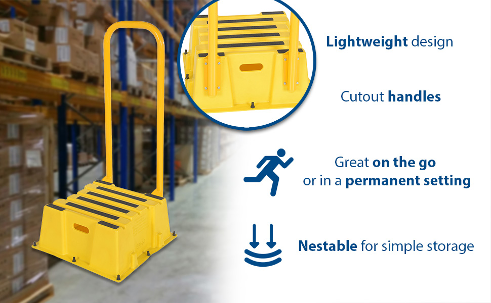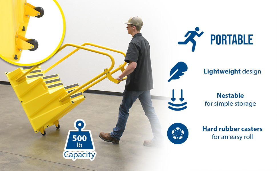 SPN-3-YL-HR-PO SPN-3-YL-HR-POPolyethylene Nestable with Handrails Casters 3 Step 500 Lb. Capacity YellowUniform Capacity (lb.): 500