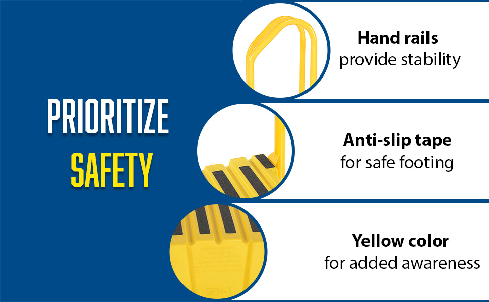 SPN-3-YL-HR SPN-3-YL-HRPolyethylene Nestable with Handrails 3 Step 500 Lb. Capacity YellowUniform Capacity (lb.): 500