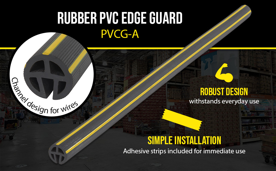 PVCG-B PVCG-BRubber PVC Edge Guard 2-3/8 In. x 3/4 In. Slot Black / YellowAttachment Method: Strap On