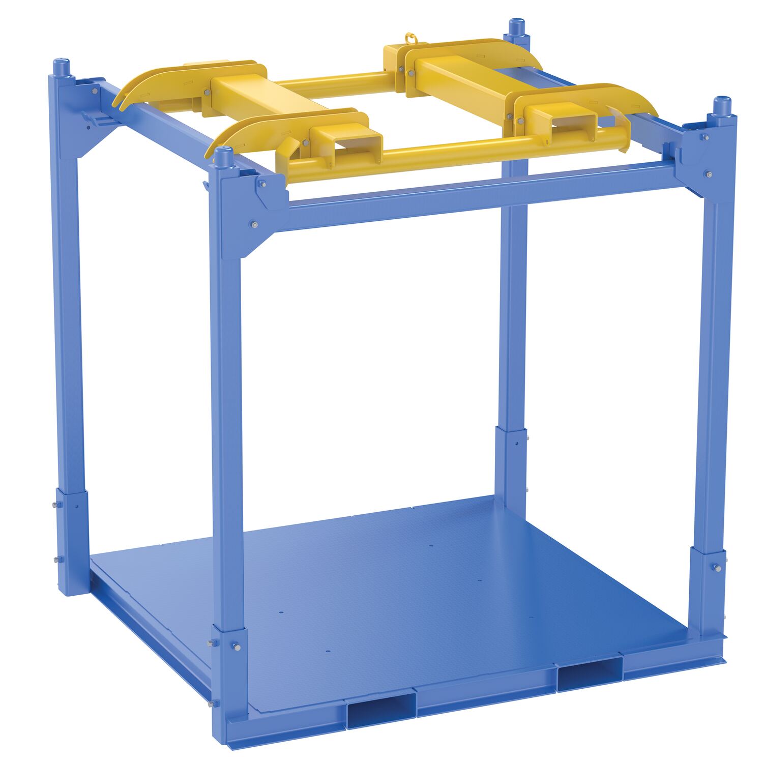 Bulk bag lifting rack provides support for lifting heavy bulk bags. Built in fork pockets ensure quick transference between areas. The outside design enables the rack to be stacked for a more efficient storage use. Sturdy steel construction provides the rack with strength and stability.