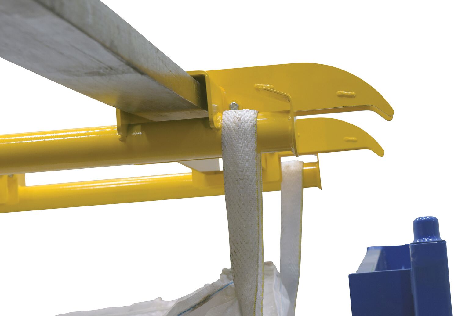 The additional arms make lifting and hanging bulk bags more secure. Constructed of steel, the arms connect with an open center bulk bag lifter. The arms are able to withstand the weight of heavy loaded bags with ease. This design supports loads by lying evenly across the top bars of a storage rack (available separately). Arms allow the bag and lifter to hang steadily with limited movement or jostling. Hardware included.
