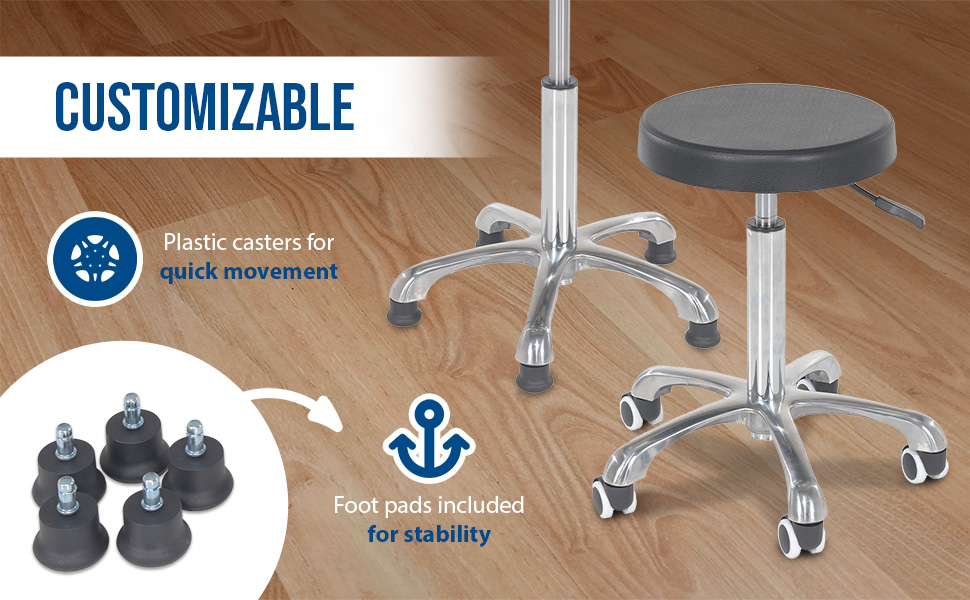 An Ergonomic Work Stool fits perfectly into a variety of workplace settings. With a steel construction, the stool is comfortable and durable and easy to clean. The height adjustment feature gives the user the ability to lower or raise the stool to the perfect position. Plastic casters are included for quick movement in the work area. Hardware included, assembly required.