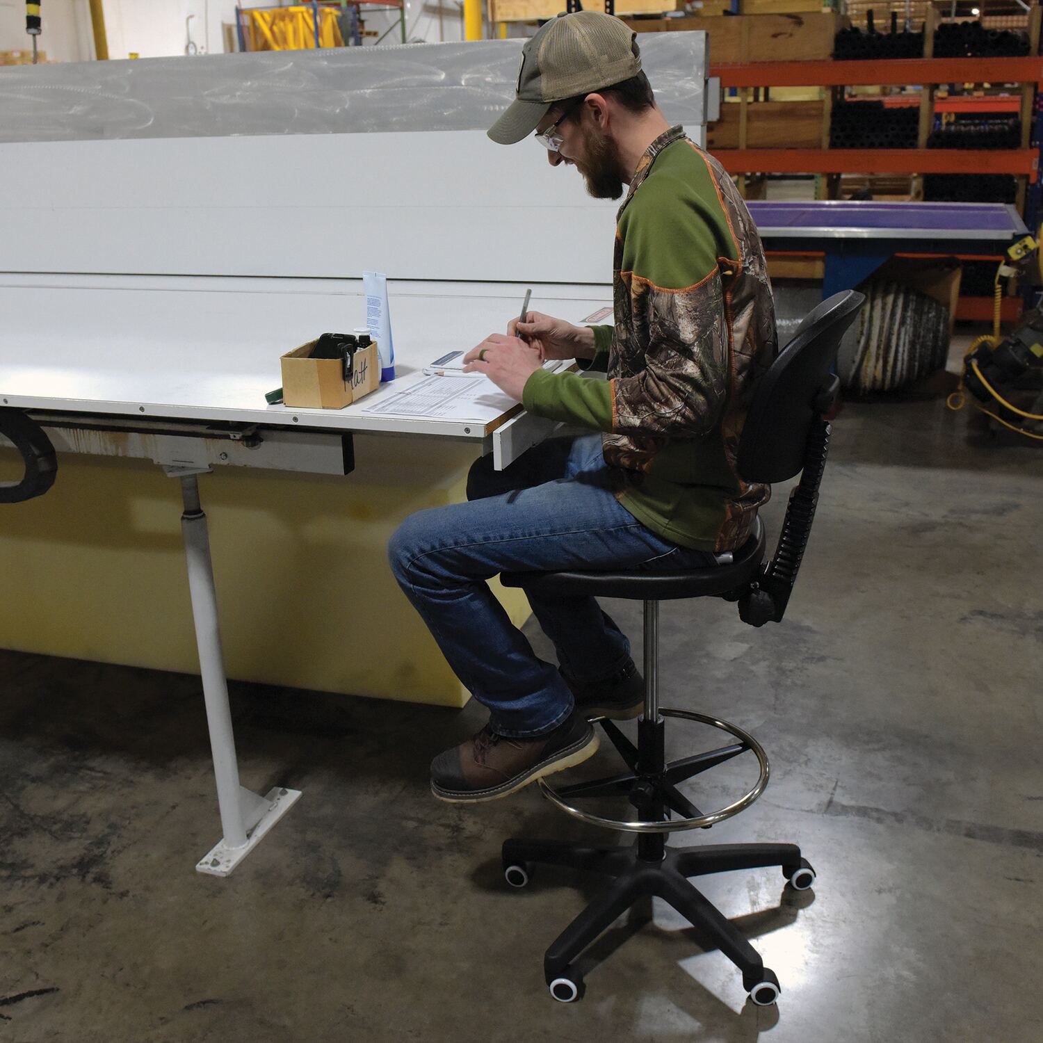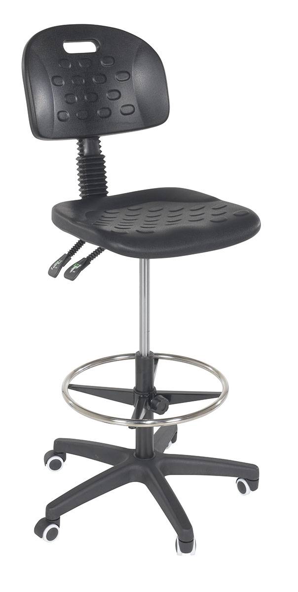 An Ergonomic Work Chair is a wonderful asset for workstations across a variety of commercial environments. With a polyurethane material and steel construction, the stool is comfortable and easy to clean. The height adjustment feature gives the user the ability to lower or raise the chair to the perfect position. Plastic casters are included for quick movement in the work area. Hardware included, assembly required.