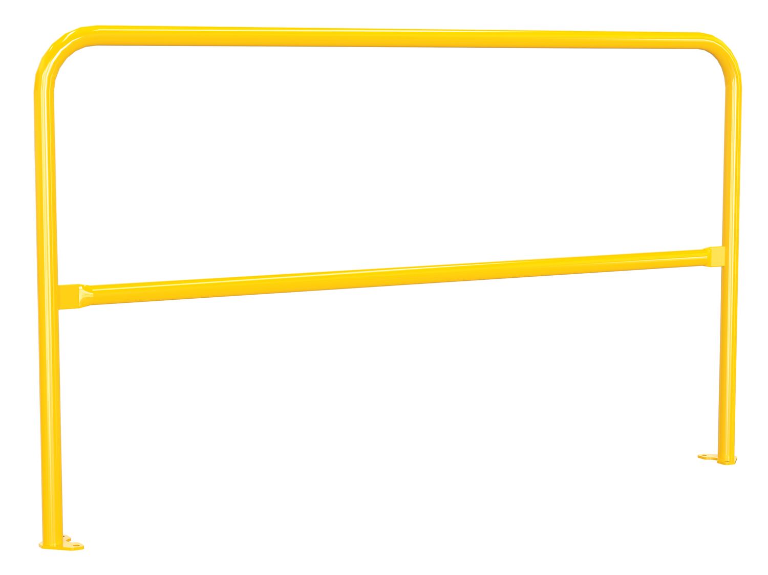 VDKR-2-BP-YLThe pipe safety railing adds protection to pathways and dock areas. The base plate not only allows for a quick installation but also gives the steadiness and strength that is needed from a safety railing. With this mounting style the unit can be permanently installed or moved between locations. The upper and lower design gives the user stability and protection against potential falls. Powder-coated yellow finish. The VDKR series safety rail products comply with U.S. Occupational Safety and Health Administration (OSHA) General Industry requirements for guardrail systems in 29 CFR 1910.29.