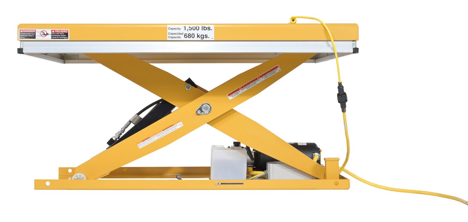 EHLT-WS-2436-1.5-31 EHLT-WS-2436-1.5-31Steel Work Station Electric Hydraulic Scissor Table 24 In. x 36 In. 1500 Lb. Capacity YellowUniform Capacity (lb.): 1,500