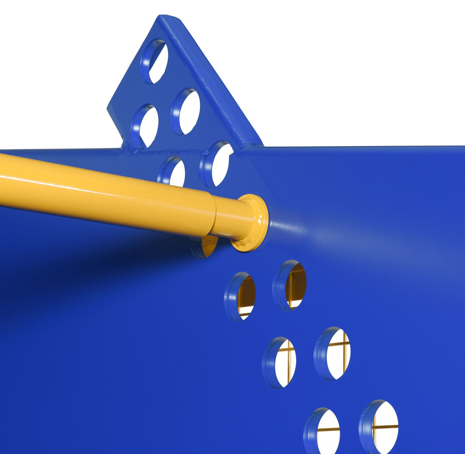 Designed for controlled dumping of material from boxes, crates, and other types of containers. Lowered height of only 3/8" allows for pallet truck loading and unloading. Retaining bar adjusts every 2" to accommodate a wide range of container heights. Each dump height has a hold down range, see chart. Maximum rotation is 135 degrees yielding a 45 degree dump angle. Unit may be stopped at any point during the dump cycle. Chute reach is 10" when fully rotated. Internal 2HP power unit and hand held control standard (5.5 HP power unit on 6,000 pound models). Protective mesh side screens included. Heavy-duty welded steel construction. Standard duty cycle equals maximum 15 starts per hour in a normal environment. Duty cycle is calculated by starts per hour or number of times "up" button is pushed. Jogging (bouncing of the chute) is NOT recommended.