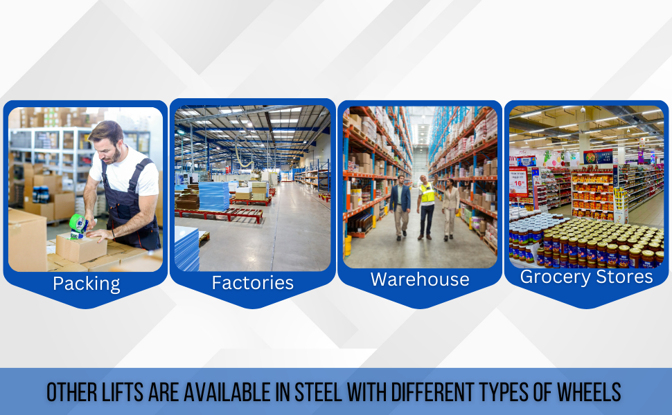 LLPH-500-4SFL LLPH-500-4SFLSteel Low Profile Lite Load Lift With Foot Pump, Swivel Casters and Manual Floor Lock 20 In. x 20 In. Platform 400 Lb. Capacity BlueUniform Capacity (lb.): 400
