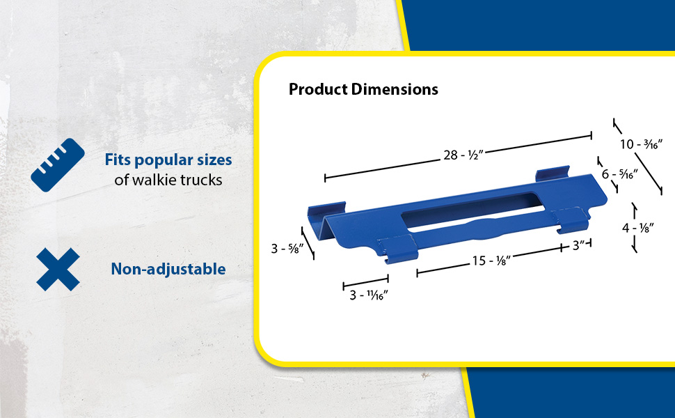 • Fits popular sizes of walkie trucks and is non-adjustable