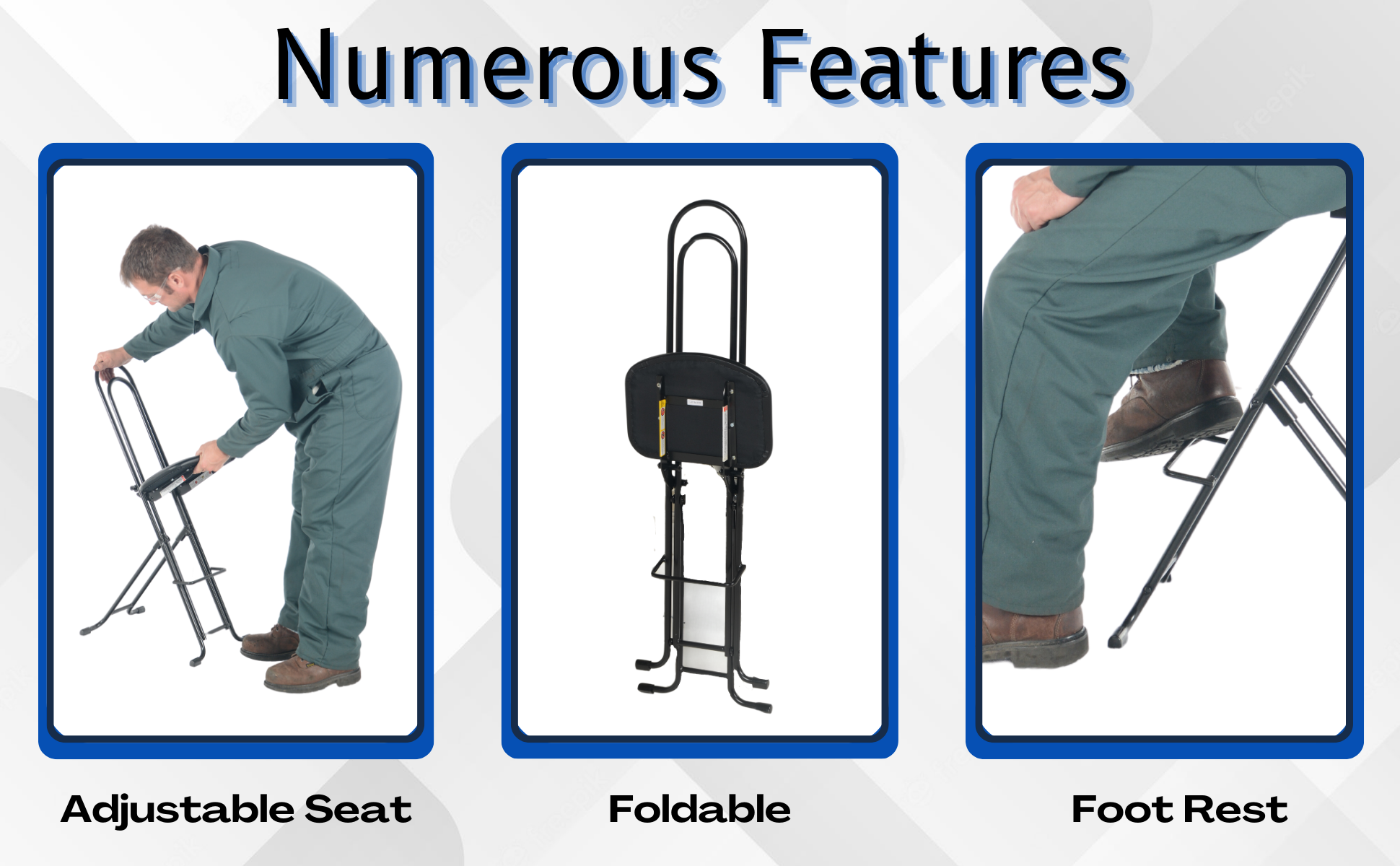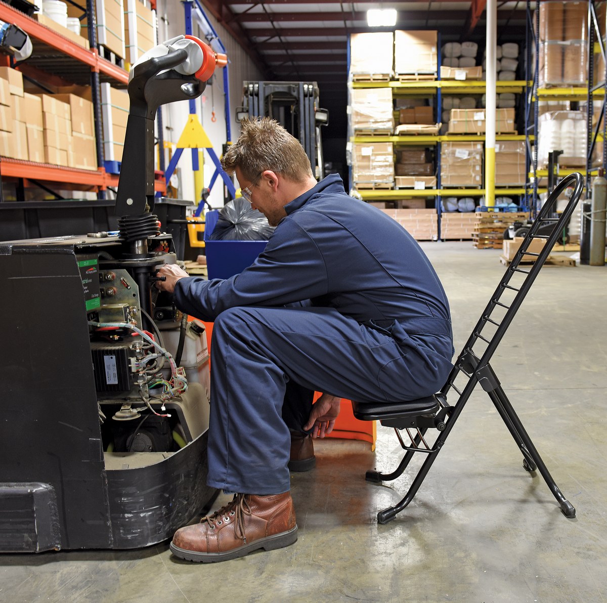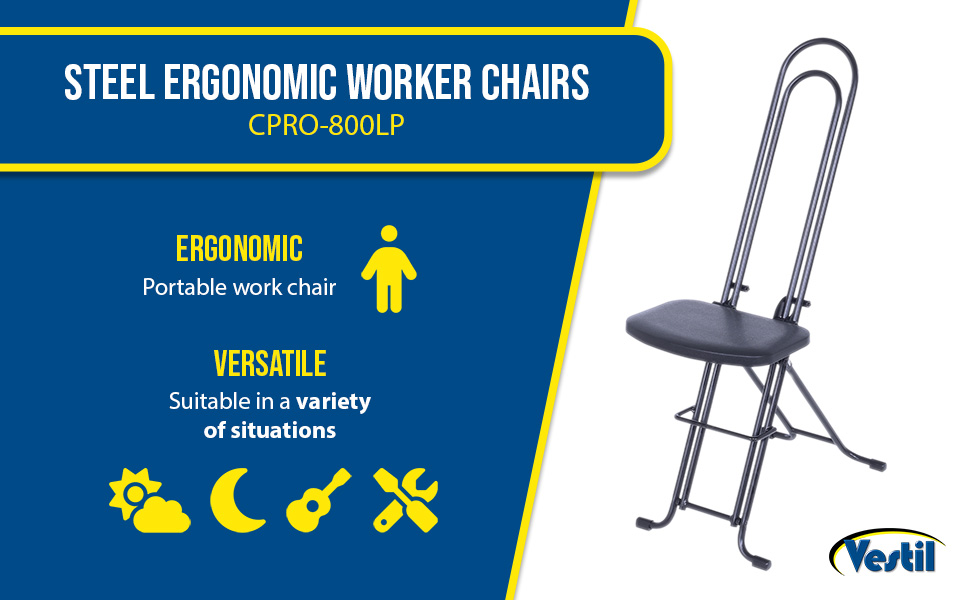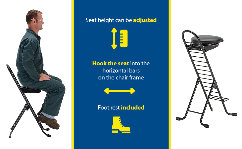 The CPRO-800LP model is not only convenient but easy to use. Simply unfold the rear legs and slide the contoured padded seat to the desired ergonomic height using the infinite adjustment for optimum work posture. Folds up to a 4" profile for easy portability and storage.