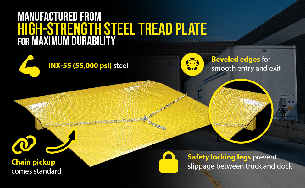 | Steel Truck Dock Plate 48 In. x 72 In. x 9-11/16 In. 8,250 Lb. Capacity Yellow | Uniform Capacity (lb.): 8250 Height Difference (in.): 7 | 528 |