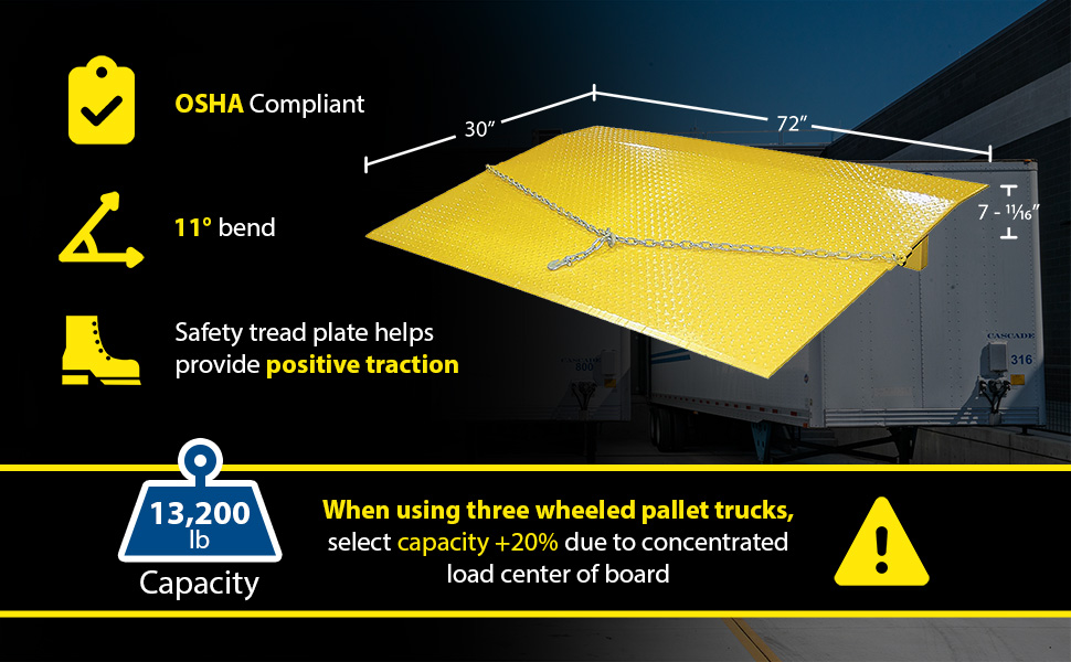 | Steel Truck Dock Plate 30 In. x 48 In. x 7-11/16 In. 8,800 Lb. Capacity Yellow | Uniform Capacity (lb.): 8800 Height Difference (in.): 4 | 227 |