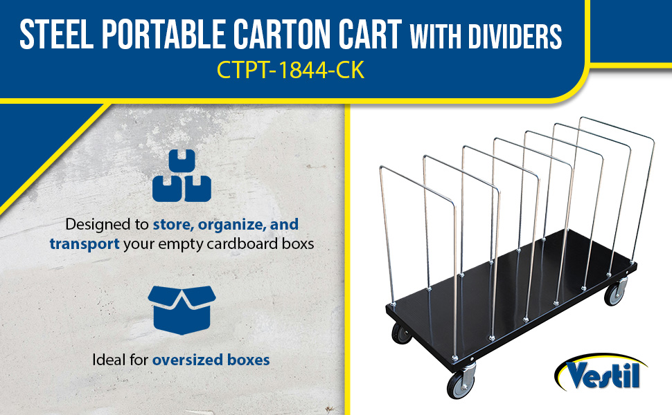 CTPT-1844-CK CTPT-1844-CKSteel Portable Carton Cart with Dividers 44 In. x 18 In. x 30 In. 400 Lb. Capacity BlackUniform Capacity (lb.): 400