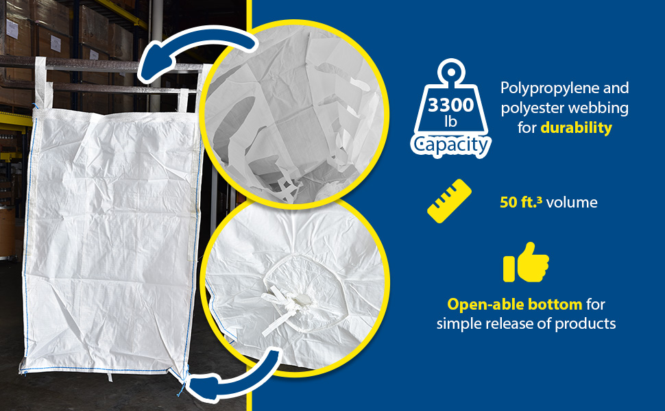 FAB-H-45 FAB-H-45Polypropylene Coated Fabric Hopper 40 Cubic Foot 3,300 Lb. Capacity WhiteUniform Capacity (lb.): 3,300
