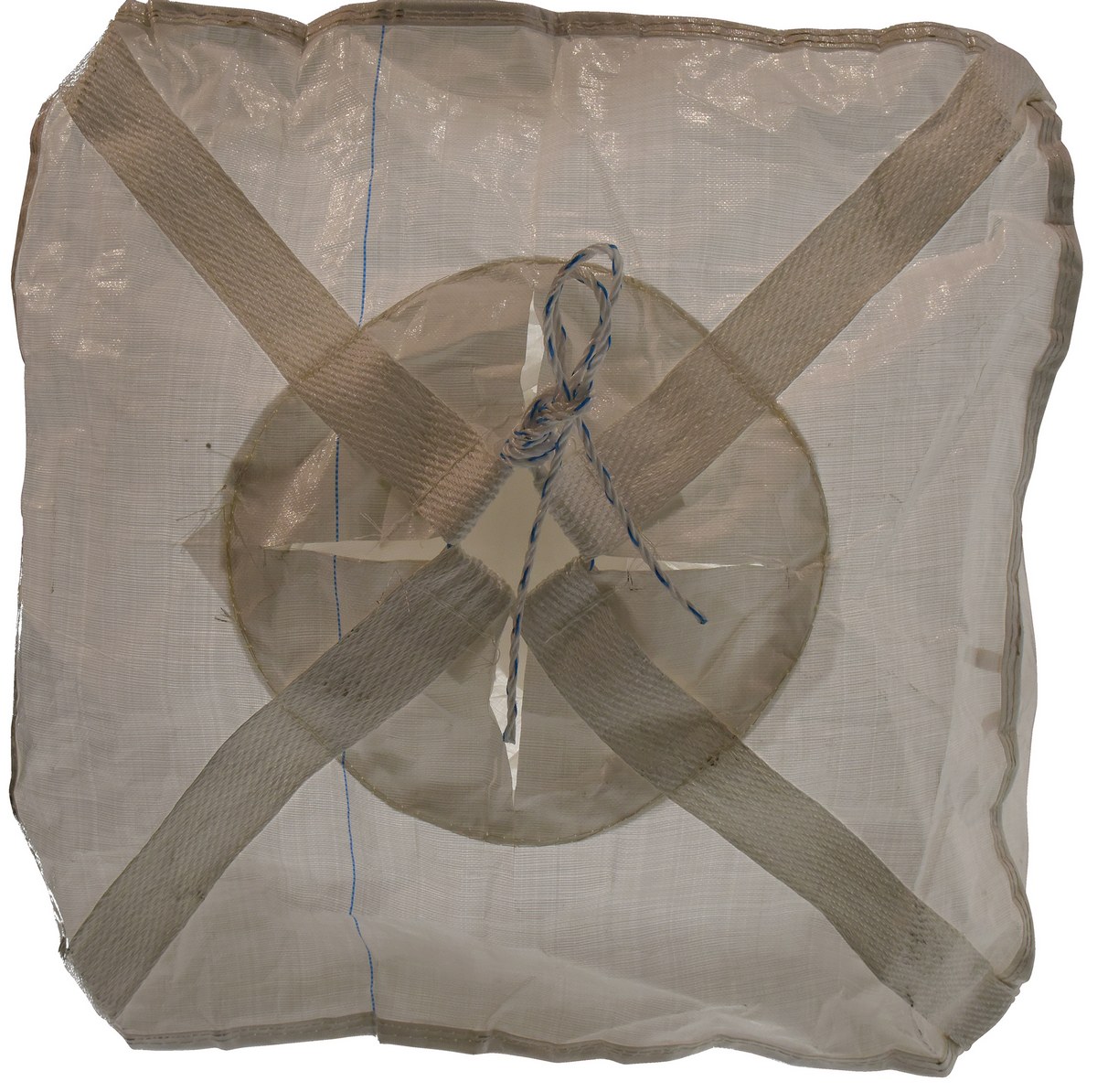 These fabric hoppers provide an economical and convenient means for storing and moving dry bulk commodities. The coated polypropylene has a polyester webbing for extra strength. The 8 oz. white fabric is UV treated. Fold for easy storage when not in use. The 4 corner straps provide convenient forklift handling, while the bottom of the unit can be opened for simple release of products. Capacity 3300 lbs.