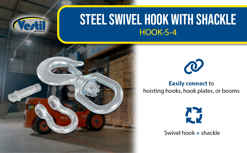 HOOK-S-4 HOOK-S-4Steel Swivel Hook with Shackle 4,000 Lb. Capacity SilverUniform Lifting Capacity (lb.): 4,000