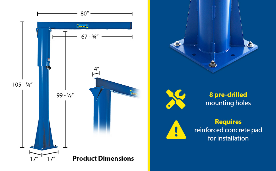 JIB-FM-40 JIB-FM-40Steel Floor Mounted Jib 80-3/8 In. I-Beam 4000 Lb. Capacity BlueUniform Capacity (lb.): 4,000