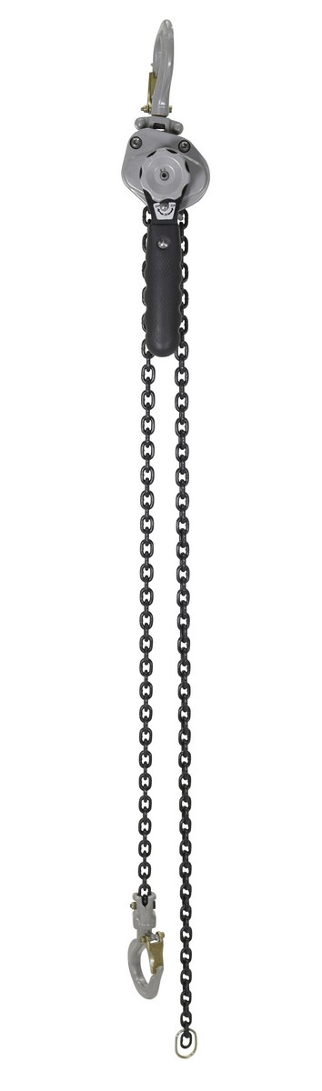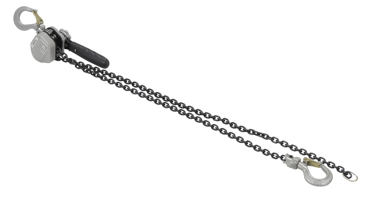 Compact and Lightweight Lever Hoists are ideal for use in confined areas when fastening, fixing or positioning of light load is required. High impact aluminum alloy housing with all the main parts made of heat treated alloy steel (more durable and longer life). Advanced gear reduction system (5 gears in the gear box) enables effortless handling and requires low hand-pull force for highly reliable lifting. Withstand 1500 cycles with 110% of rated capacity. Features lightweight high strength grade 100 chain. Heavy duty storage bag included.