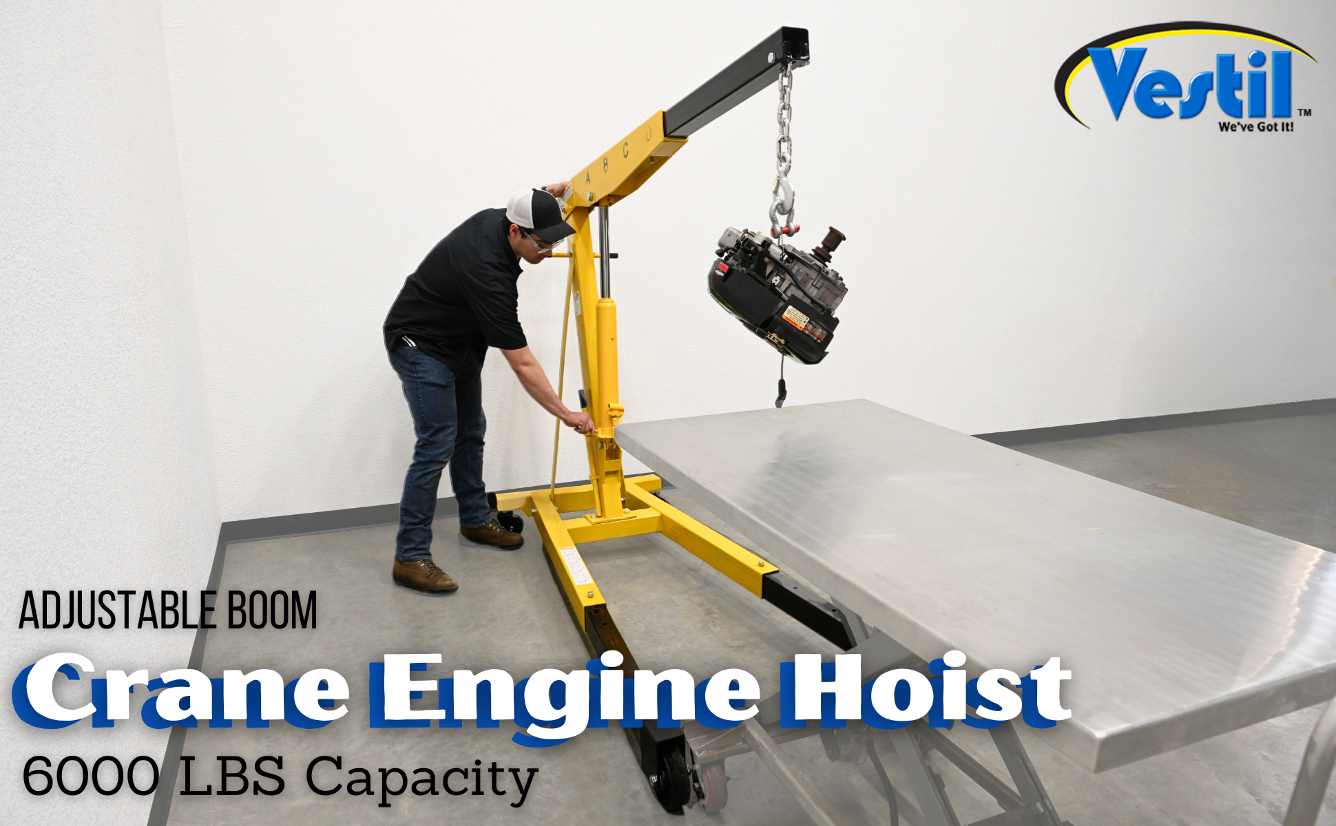 EHN-60-GThese portable units are great for hundreds of lifting applications. Telescopic boom for multiple lifting heights and capacities. Boom is raised and lowered with a manual hydraulic hand pump. The high-capacity hydraulic cylinder provides for faster lifting action and features a large diameter ram to withstand angled loads when lifting. Includes two rigid and two swivel casters for portability. Heavy-duty steel construction and painted finish.