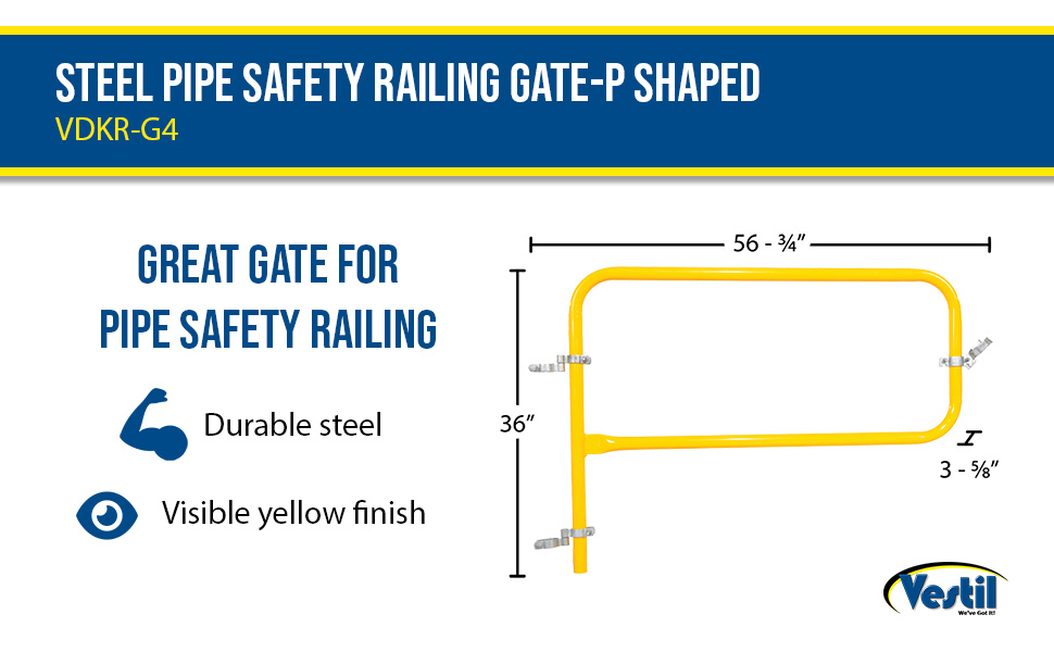 VDKR-G4 VDKR-G4 Steel Pipe Safety Railing Gate-P Shaped 48 In. x 36 In. Yell… 90 Days Limited Warranty 55