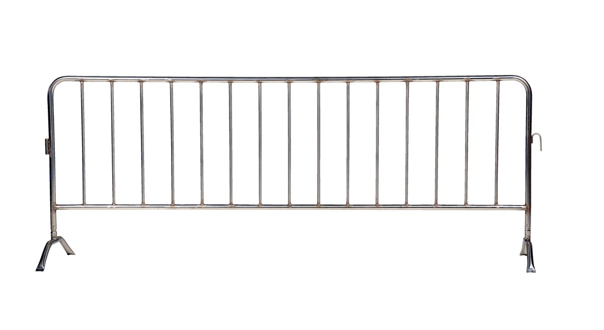 PRAIL-102-HD-SS PRAIL-102-HD-SS304 Stainless Steel Heavy Duty Crowd Control Interlocking Barrier with Curved Feet 101-3/8 In. Length SilverVertical Bar Spacing (in.): 5-3/4