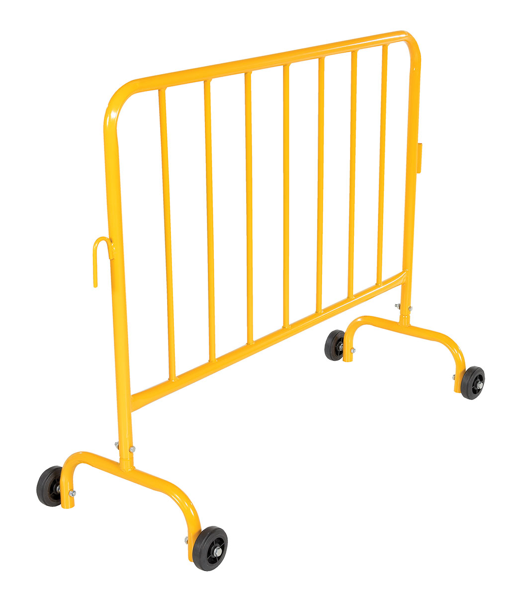 PRAIL-102-Y-WW PRAIL-102-Y-WWSteel Crowd Control Interlocking Barrier with Wheeled Feet 101-3/16 In. Length YellowVertical Bar Spacing (in.): 5-7/8