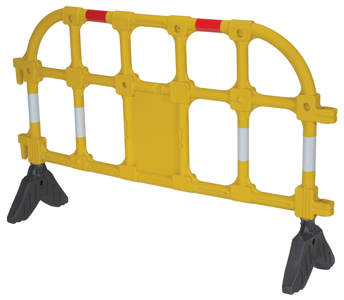 • Plastic handrail barrier has non-removable feet that come pre-filled with sand for weight ballast