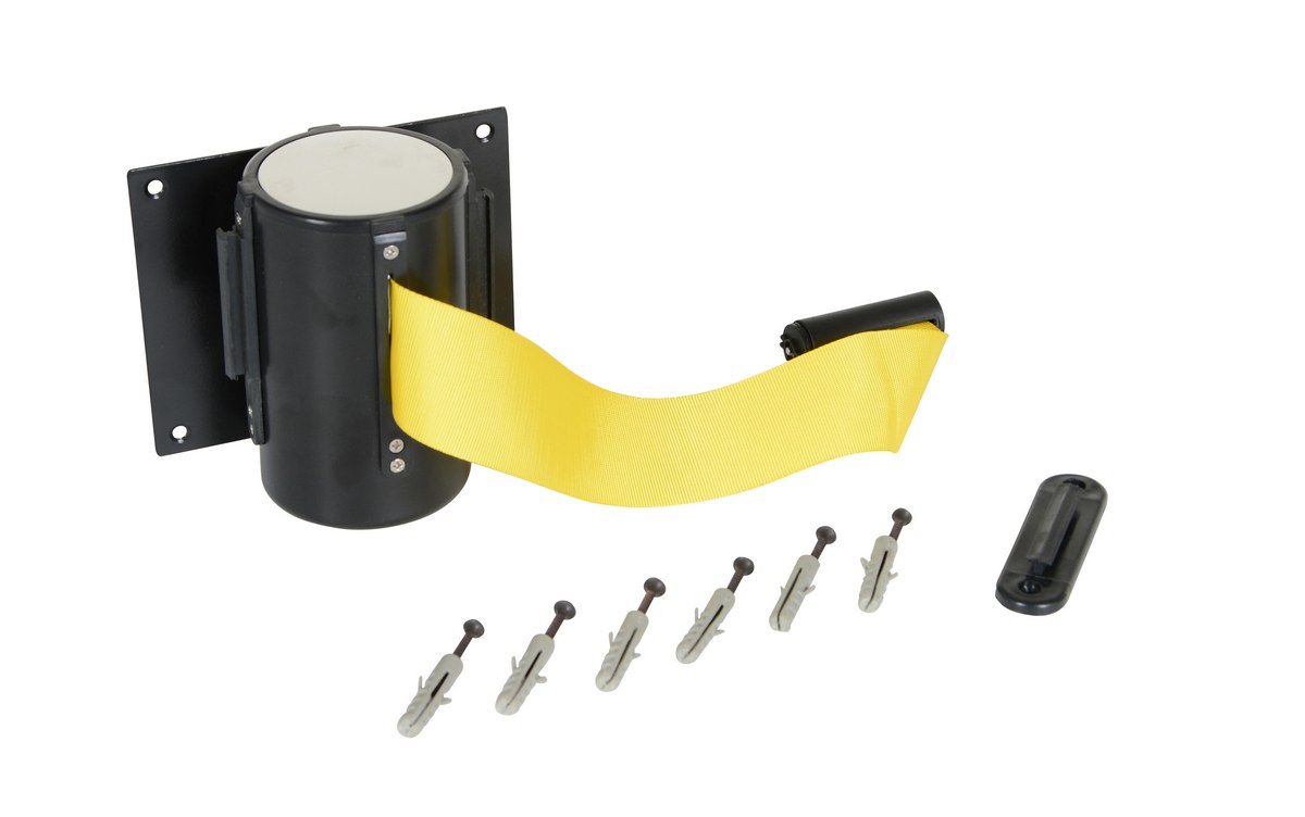 Keep lines flowing smoothly with economical personnel guidance barriers. Perfect for restaurants, offices, hospitals, schools, and banks. Ideal for indoor applications. Wall Mounted Barrier, model WEB-W includes yellow fabric web. The self-retracting web extends up to 72". Web end will attach to wall-mounted receiver or another floor-mounted barrier. Available in 15' length, model WEB-W-15. Classic Tensabarrier Web Barrier (TSB models) is seen around the world in various businesses and airports. Standard is a black belt but many belt colors and designs available, contact factory for different options and pricing. Series WEB are not interchangeable with series TSB.