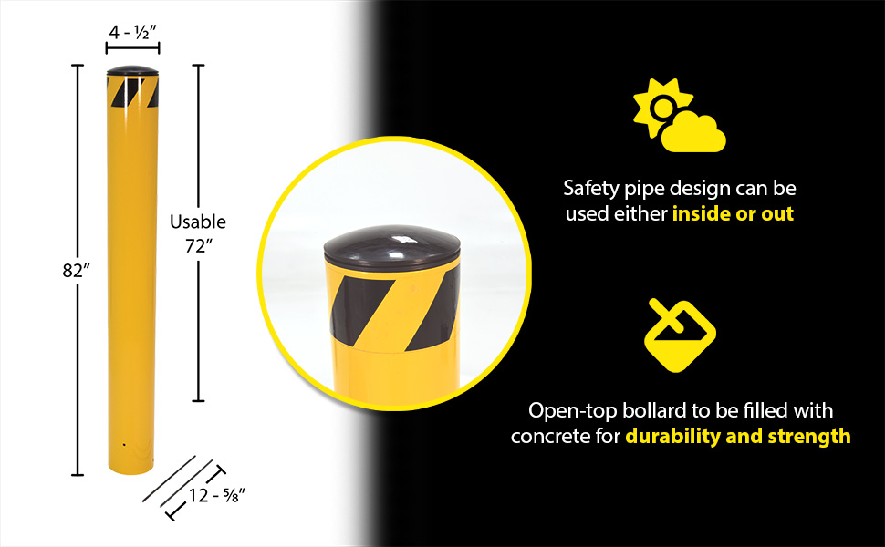BOLPP-62-4.5 BOLPP-62-4.5Steel Pour In Place Bollard 62 In. x 4-1/2 In. YellowUsable Height (in.): 62
