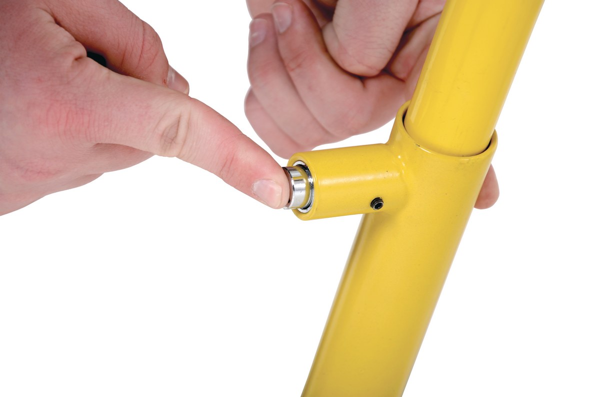 Secure an individual parking place from unwanted trespassing. Hinged parking hoop is constructed of cast steel with a UV resistant safety yellow baked-in powder-coated toughness on model PARK-P-38-S. Model PARK-P-38-ZN is made of steel construction. In the horizontal position the parking hoop allows free passage for cars and pedestrians. When engaged, the parking hoop is both a visual and safety barrier. Stands on three (3) hinged legs for better stability and resistance. Easy to operate. Secures in both open and closed position via internal lock, two (2) keys included. Reflective bands and six (6) 3/8" x 3" concrete anchors for securing bollard to concrete included.