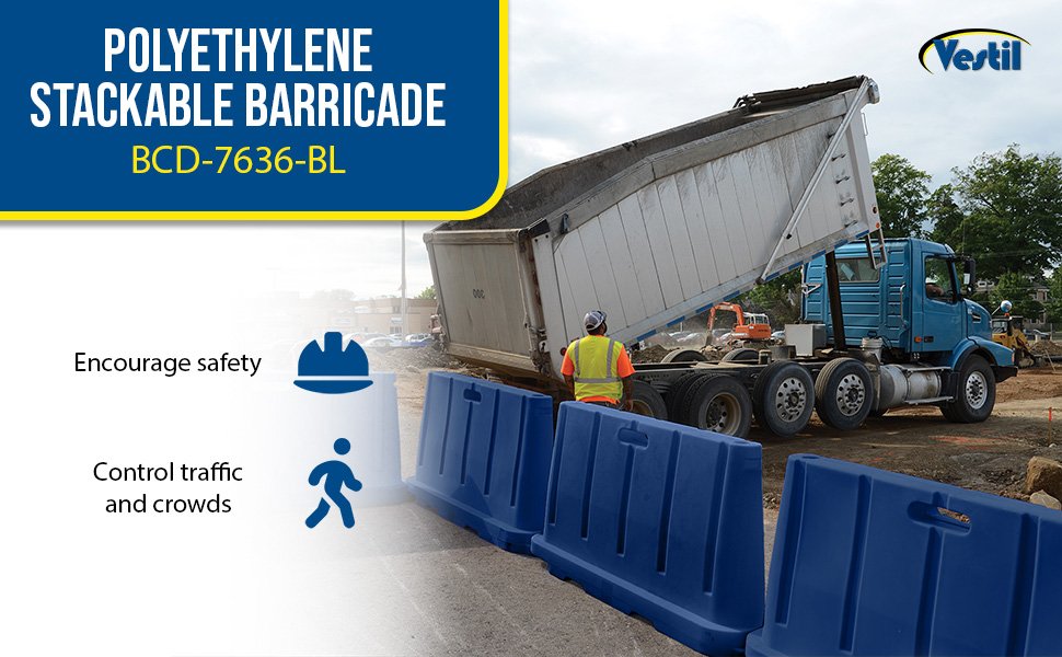 BCD-7636-BL BCD-7636-BLPolyethylene Stackable Barricade 76-1/2 In. x 16 In. x 36 In. BlueMaterial Thickness (in.): 0.15
