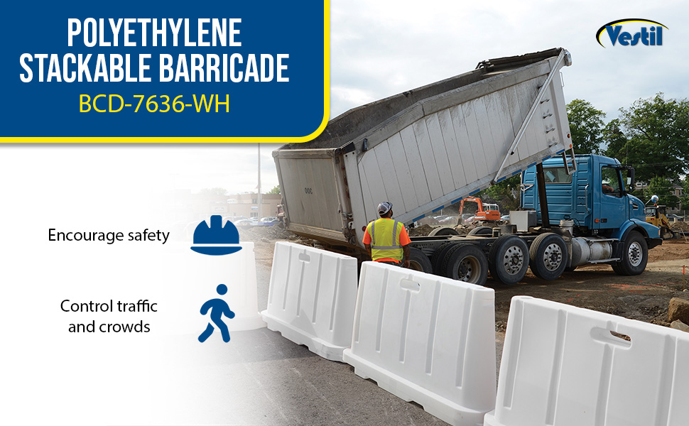 BCD-7636-WH BCD-7636-WHPolyethylene Stackable Barricade 76-1/2 In. x 16 In. x 36 In. WhiteMaterial Thickness (in.): 0.15