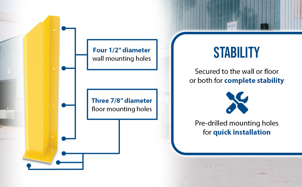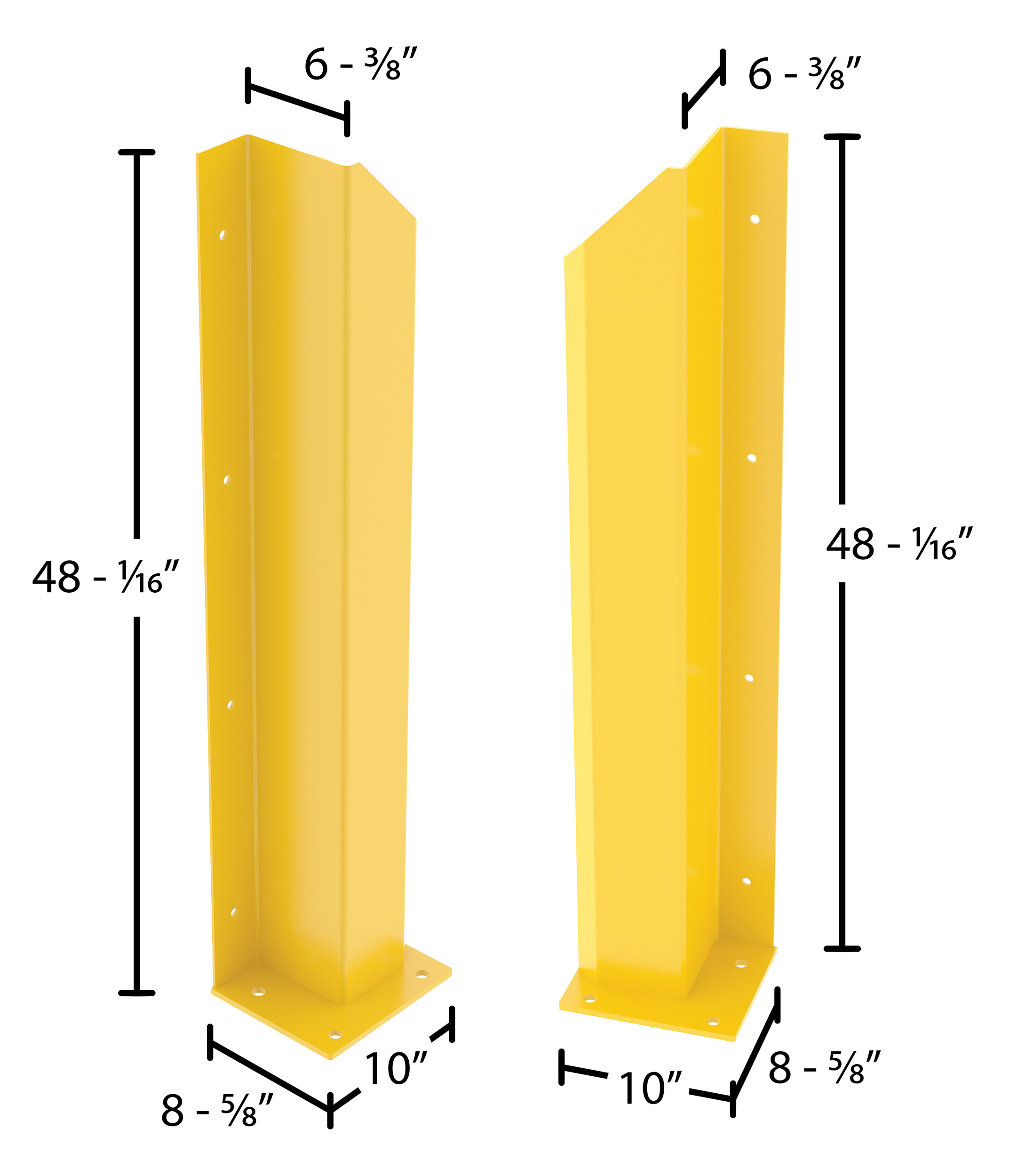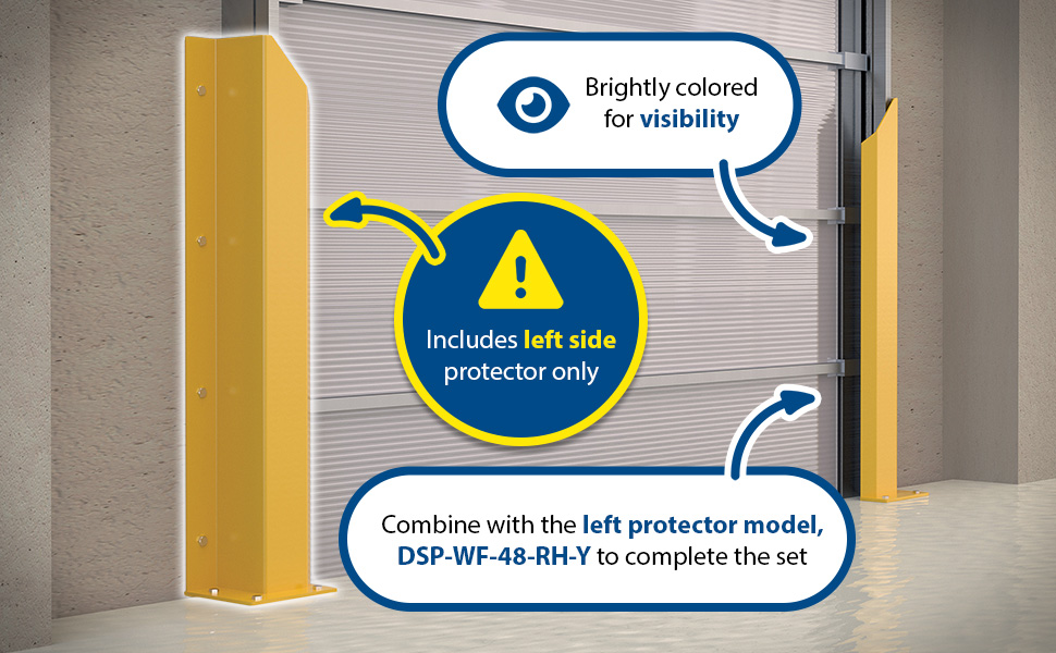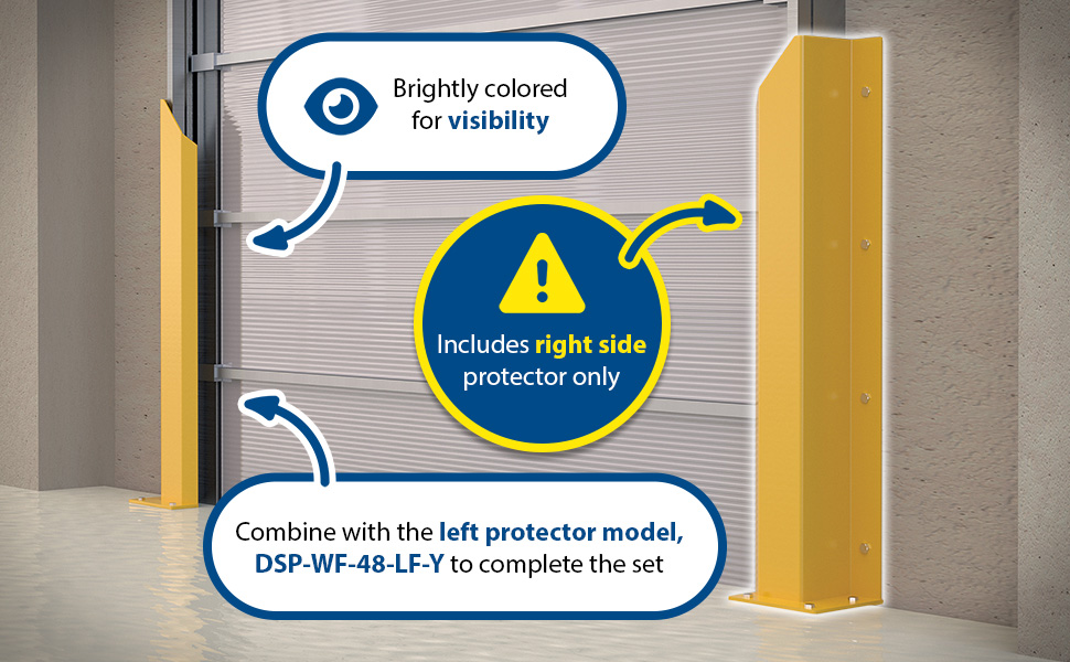 DSP-WF-48-BRL-YL DSP-WF-48-BRL-YLSteel Overhead Door Track Protectors 48-1/16 In. Pair 1 Left and 1 Right YellowMounting Hole Diameter (in.): 7/8