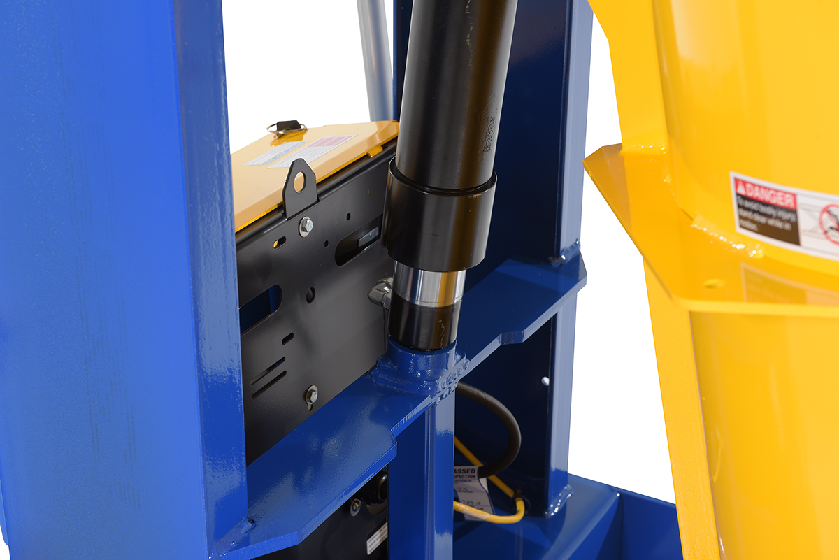 HDD-36-7-S HDD-36-7-SSteel Stationary Hydraulic Drum Dumper 36 In. Dump Height 750 Lb. Capacity Blue / YellowUniform Capacity (lb.): 750