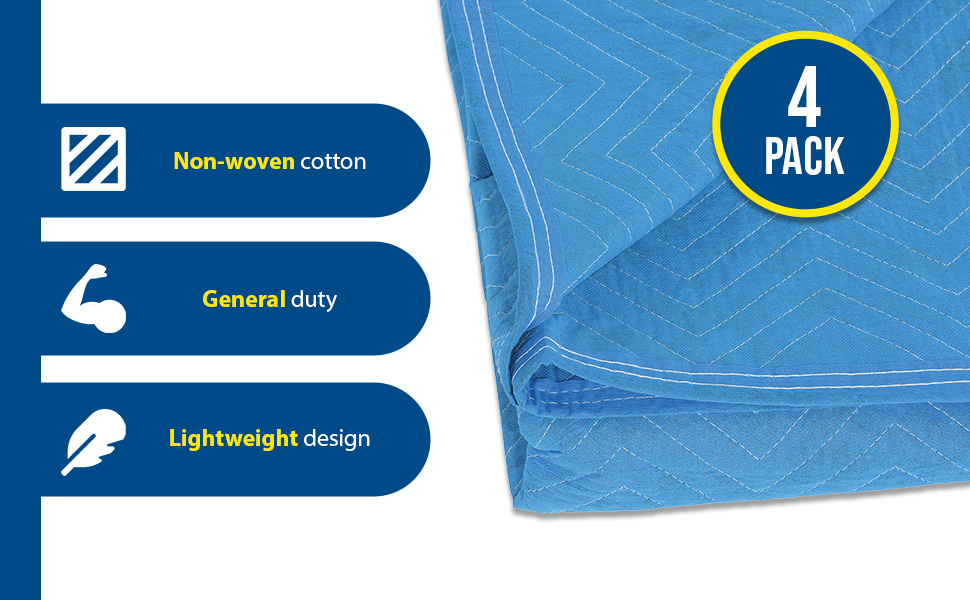 QPC-7280-DP-4PK QPC-7280-DP-4PKNon-Woven Cotton Both Sides General Duty Quilted Moving Pads 80 In. x 72 In. x 1 In. 4 Pack BlueStyle: Standard