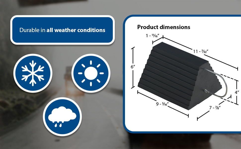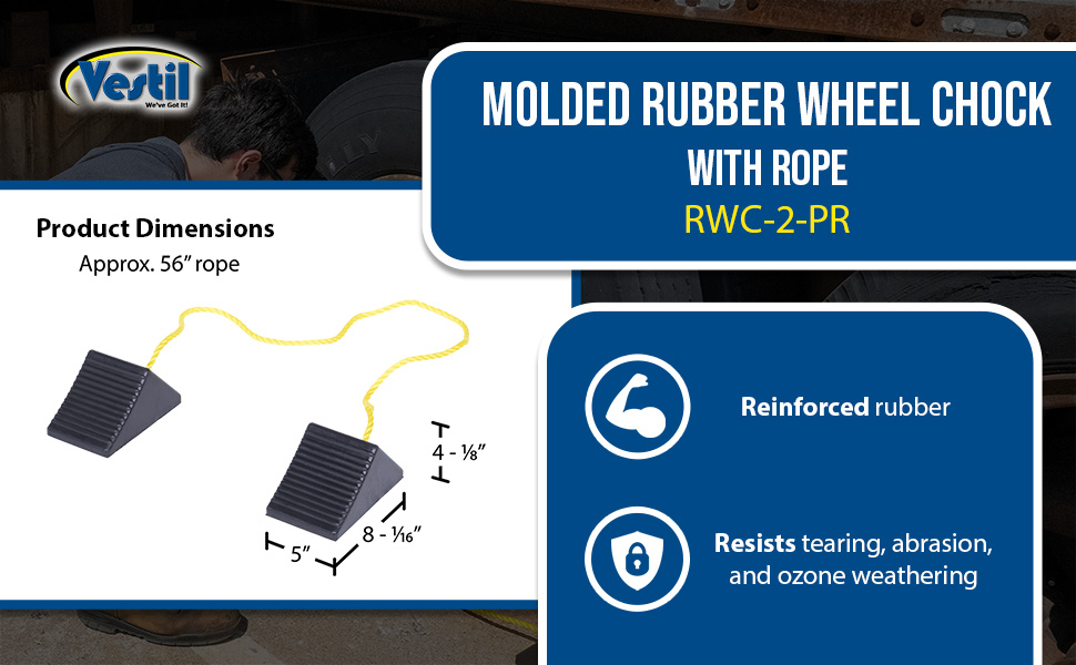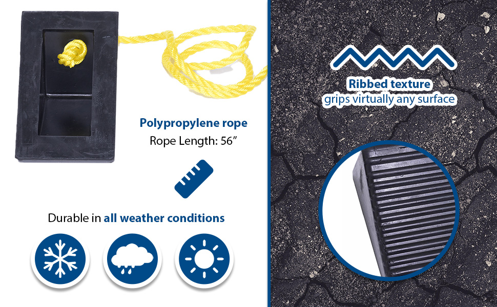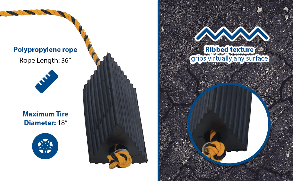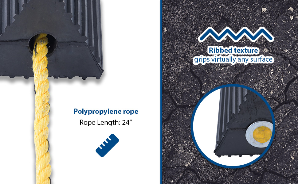 RWC-2-PR RWC-2-PRMolded Rubber Wheel Chock with Rope 8 In. x 56 In. x 4 In. BlackWheel Chock Connection: Rope