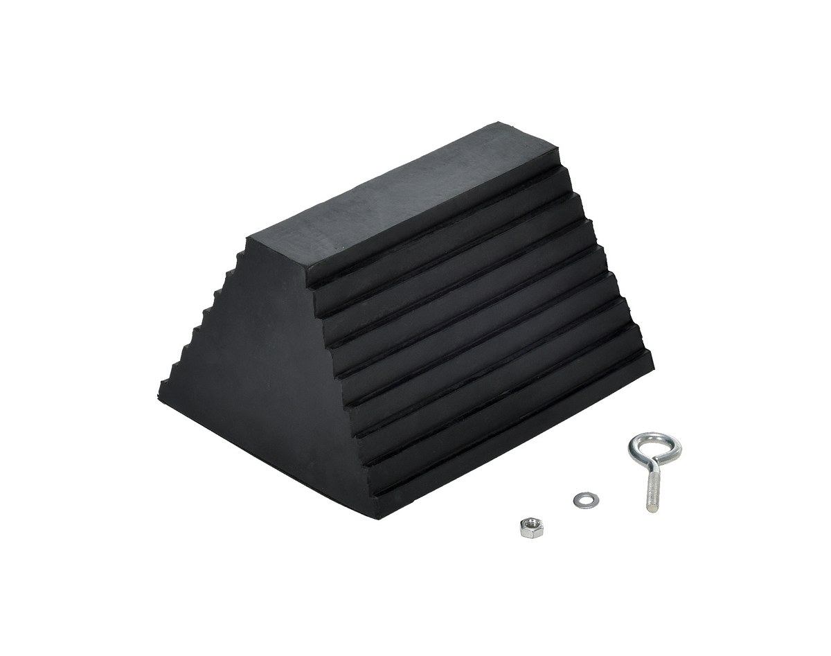 RWC-8-DJN RWC-8-DJNMolded Rubber Wheel Chock with Eye Bolt and Double Jam Nut 8 In. x 9-1/2 In. x 6 In. BlackWheel Chock Connection: None