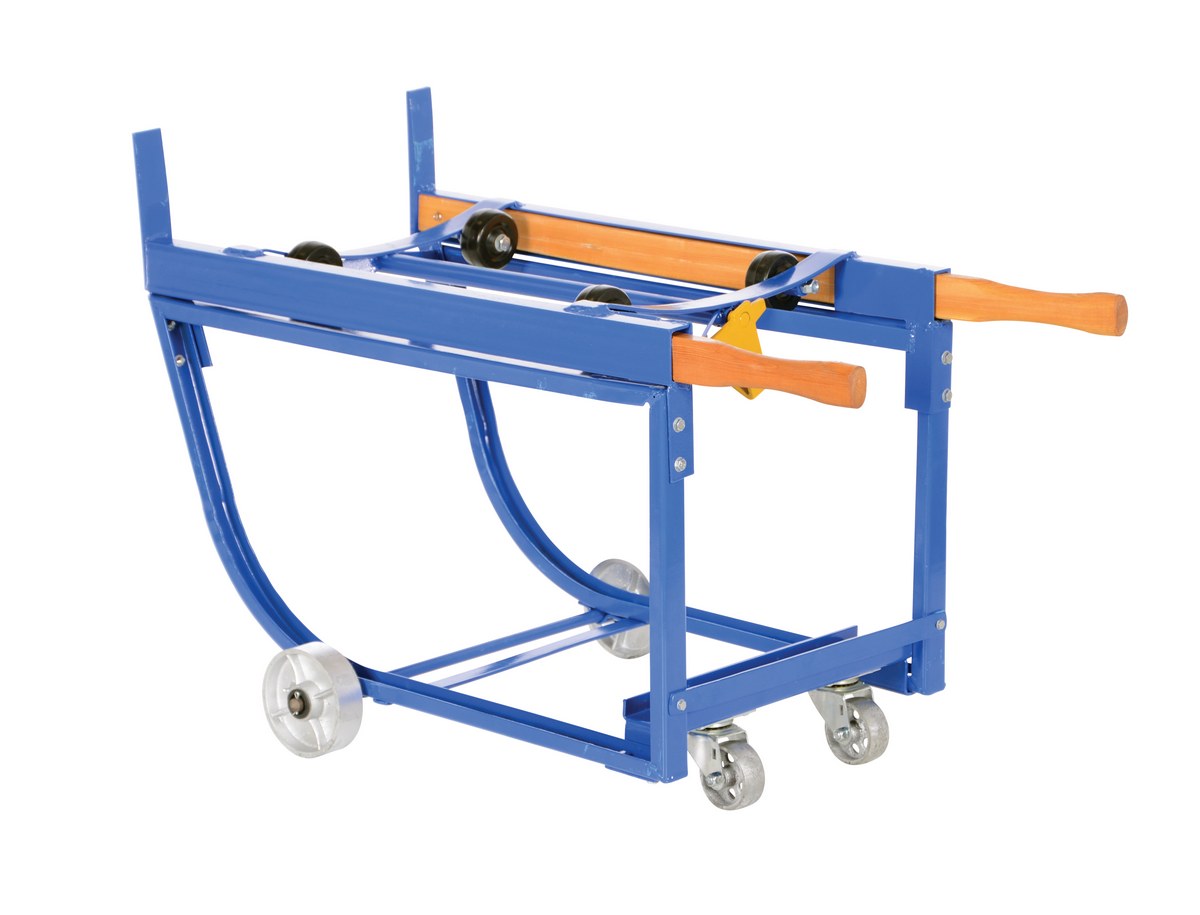Practical design is easy to operate and features a capacity of 1,000 pounds. Includes two (2) rigid and two (2) swivel casters. Two (2) retractable wooden handles included for easy operation. Steel stops enable operator to hold drum during tipping operation and includes a built-in bung nut wrench as a bonus. Rugged steel construction with painted finish. Assembly required.