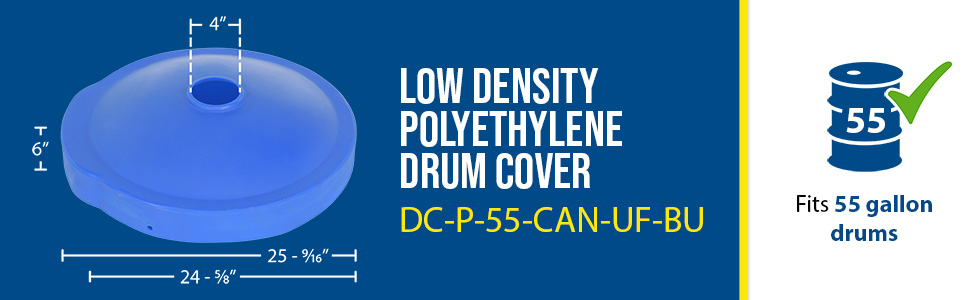 DC-P-55-CANF-UF-BU DC-P-55-CANF-UF-BULow Density Polyethylene Drum Recycling Lid with Flaps Universal 55 Gallon BlueOverall Diameter (in.): 24-5/8