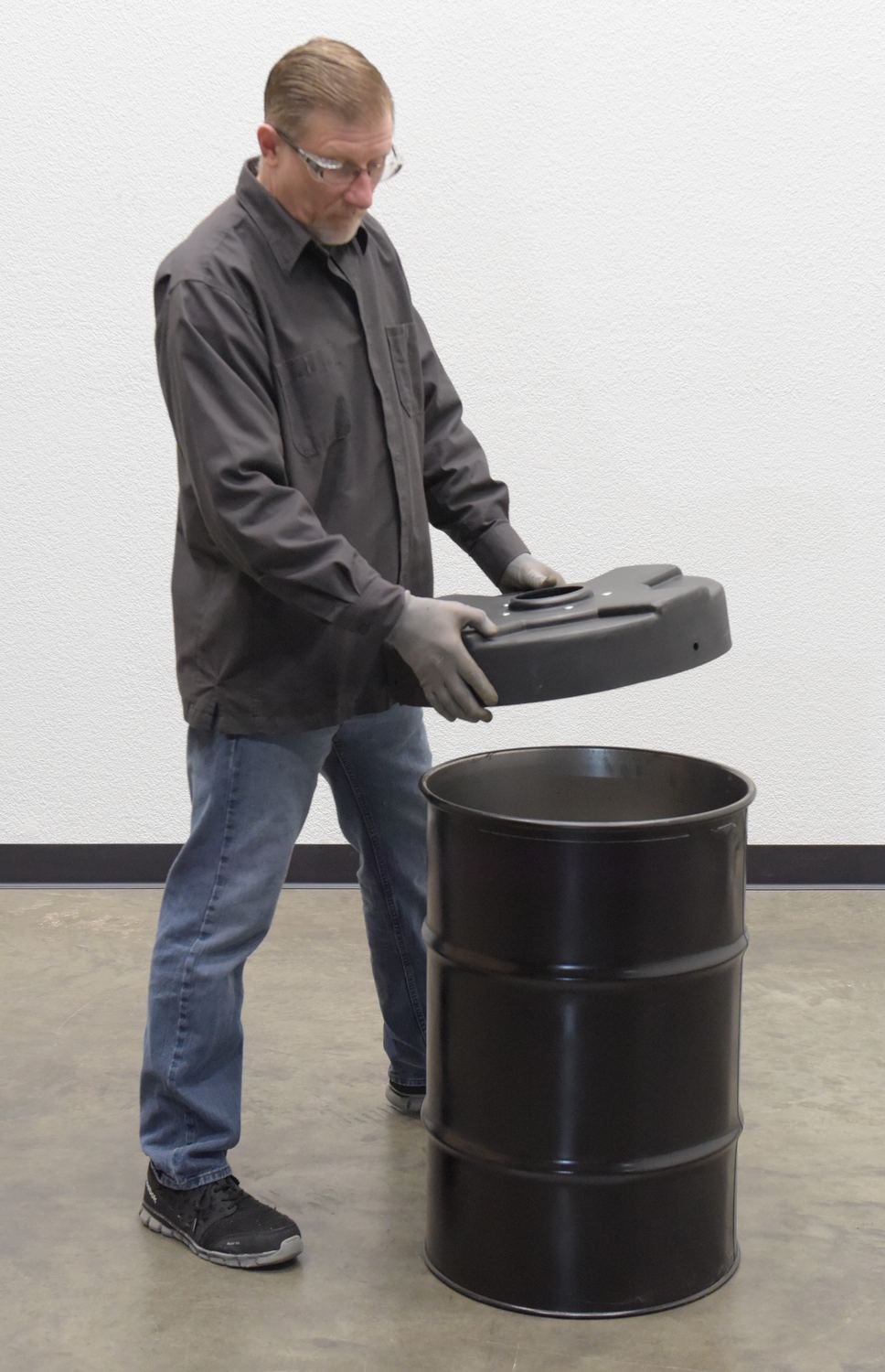 DC-P-55-CANF-BK DC-P-55-CANF-BKLow-Density Polyethylene Drum Recycling Lid with Flaps Closed 55 Gallon BlackWorks With Steel Drum (gal.): 55