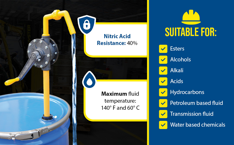 RP-90R RP-90RPolyphenylene Sulfide Manual Rotary Drum Pump 10 In. x 8 In. x 12 In. YellowPump Type: Rotary - Vane