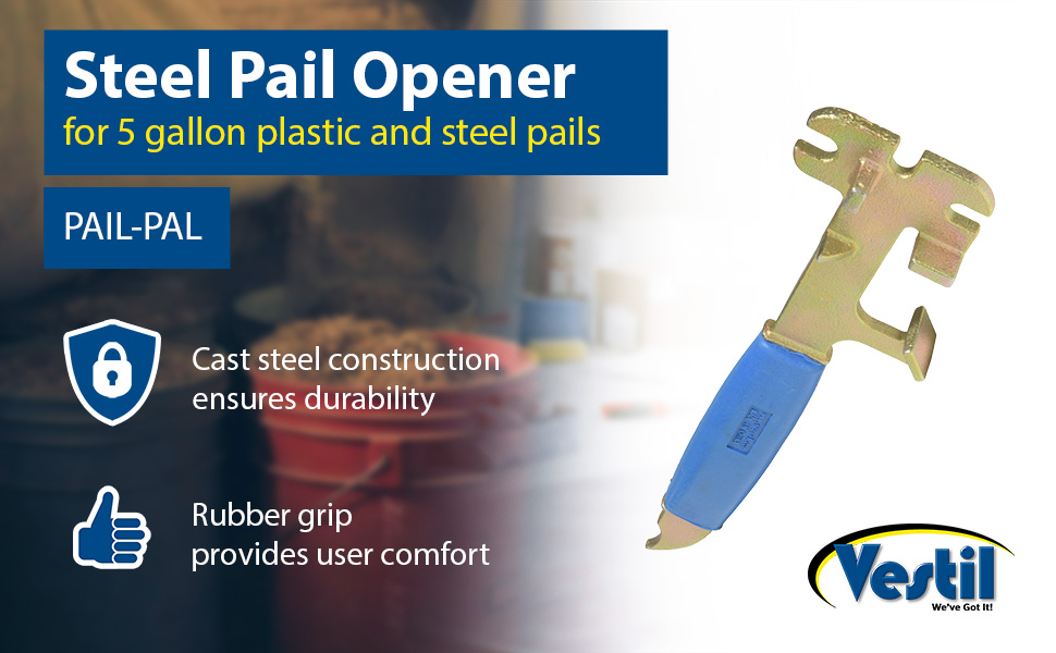 PAIL-PAL-UN PAIL-PAL-UNCast Steel UN Rated Pail Opener 11 In. x 3-1/2 In. x 1-7/8 In. 5 Gallon GoldAccommodates Pail Type: UN Rated 5 Gallon Plastic & Steel