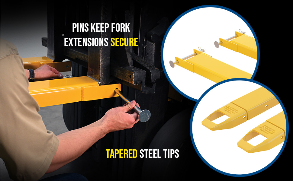 FE-5-48-P FE-5-48-PSteel Pin Style Fork Extensions 5 In. x 48 In. 4000 Lb. Capacity YellowUniform Capacity Per Pair (lb.): 4,000